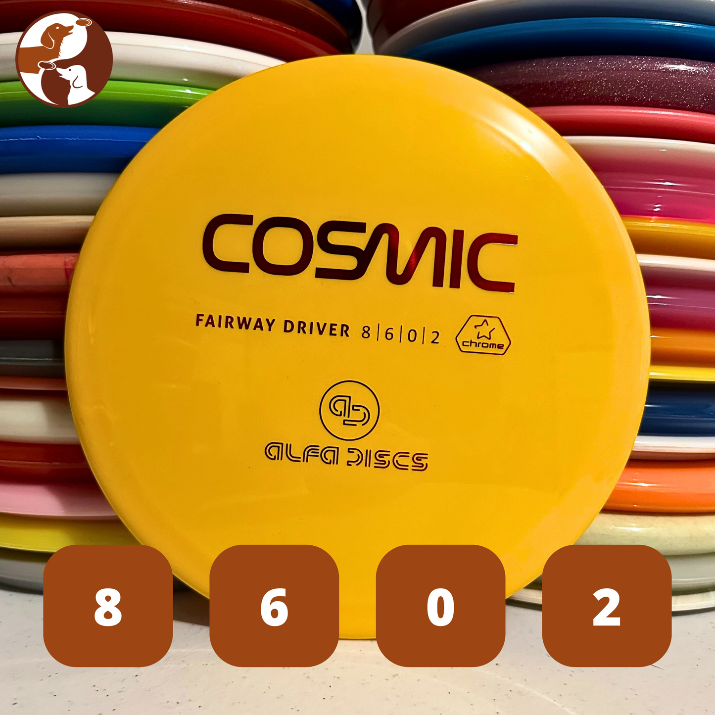 The Cosmic is a dependable fairway driver with high glide and provides a nice consistent flight. This mold will do well as your go-to disc. It is capable of holding a variety of lines from hyzer to anhyzer, making it a highly capable mold for shot shaping, or to get controllable distance. It’s great for both backhand and forehand.