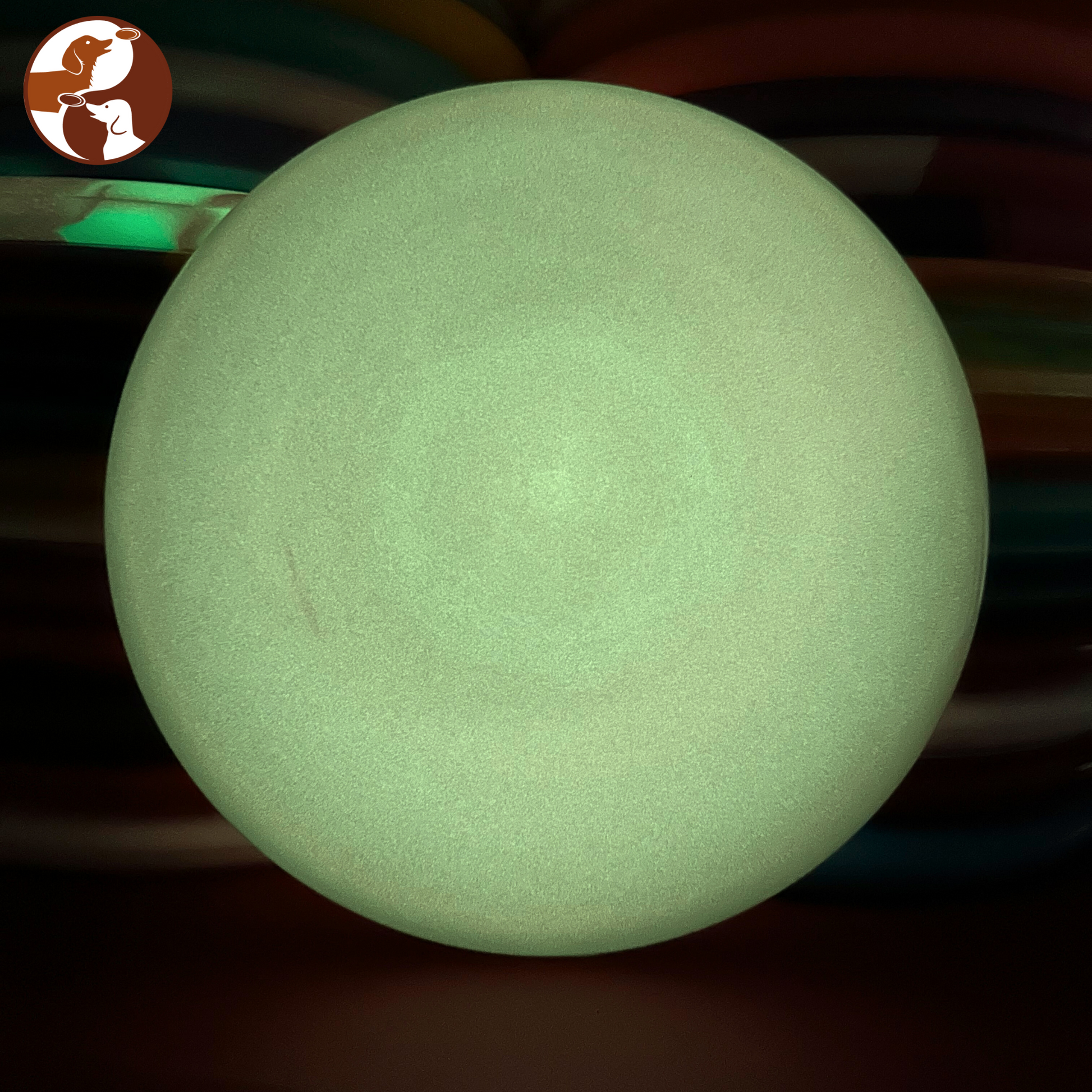 The first picture was taken after using a UV flashlight on the disc. In our tests, it glows a little longer than their previous attempts at glow discs.