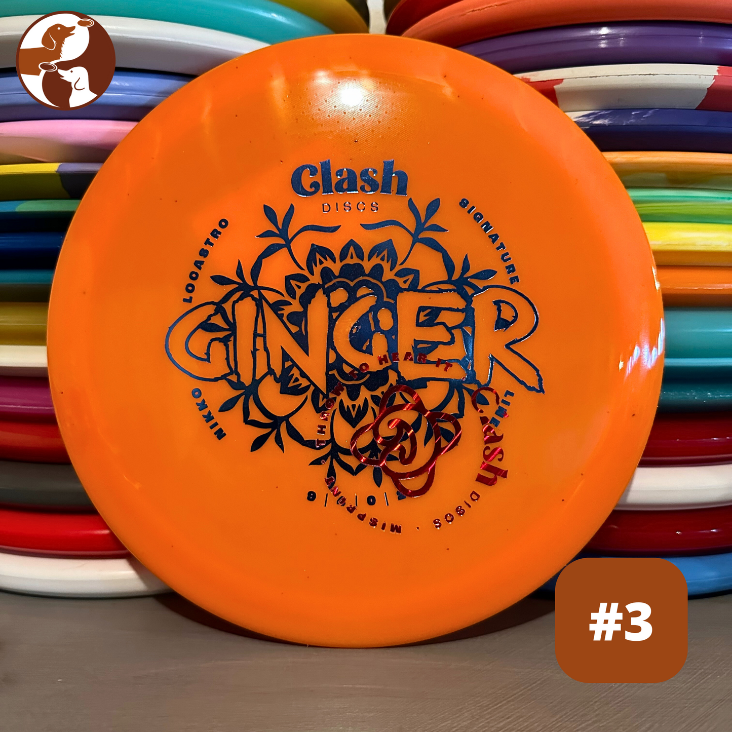 Overstable fairway driver designed to stand up to strong power throws. Predictable, yet not too strong of a fade. Similar in profile and flight as the Innova Thunderbird, the Ginger is a stable distance driver that would slot perfectly in a player's bag that's looking for a disc that is not too fast but still has a consistent end fade. It will handle both forehand and backhand throws and deal with torque when pushed by experienced throwers.