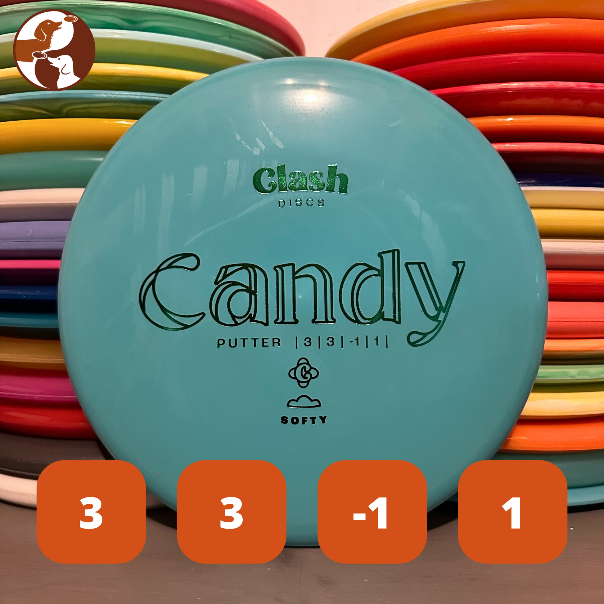 Softy plastic is Clash Discs' midgrade putter plastic but in a soft blend. It has more flexibility than Hardy plastic and superb grip. It feels very comfortable in the hand and provides excellent grip in all putting conditions!
