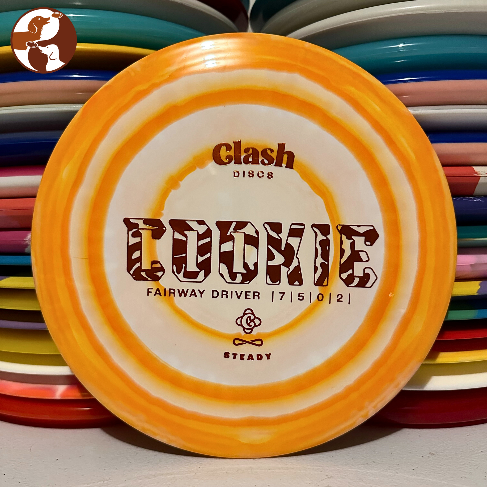 The Cookie - also called the Biscuit in the UK (or maybe we just made that up) - is a straight fairway driver with a reliable fade. It offers a flight path that can be easily manipulated to hold different angles. The disc was designed to have just enough torque resistance so it is also a great choice for forehand players.