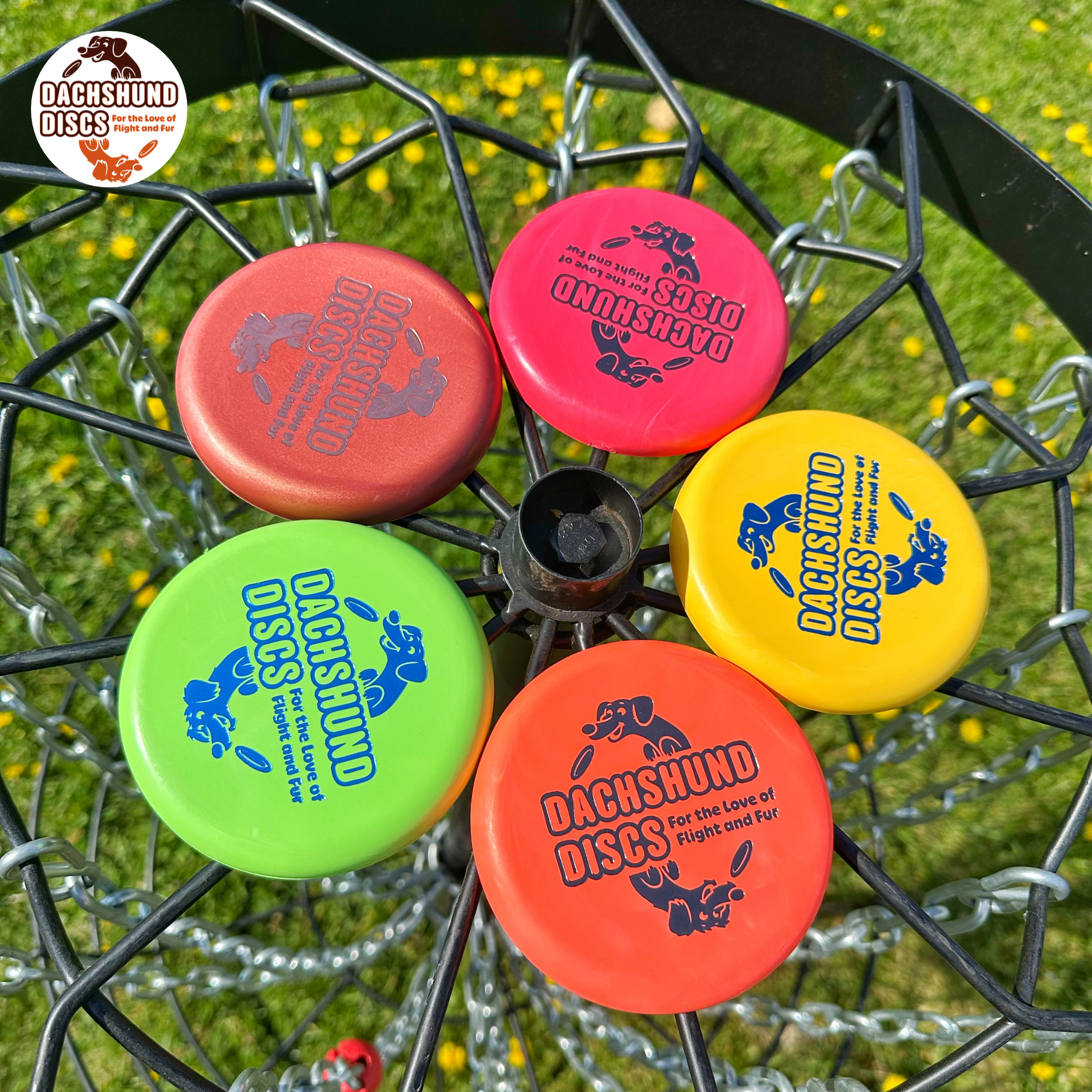 Each mini features our new Dachshund Discs logoācomplete with Rigby and Louie, of courseāand can be used as a PDGA-approved mini marker during tournament play or your casual weekend rounds.