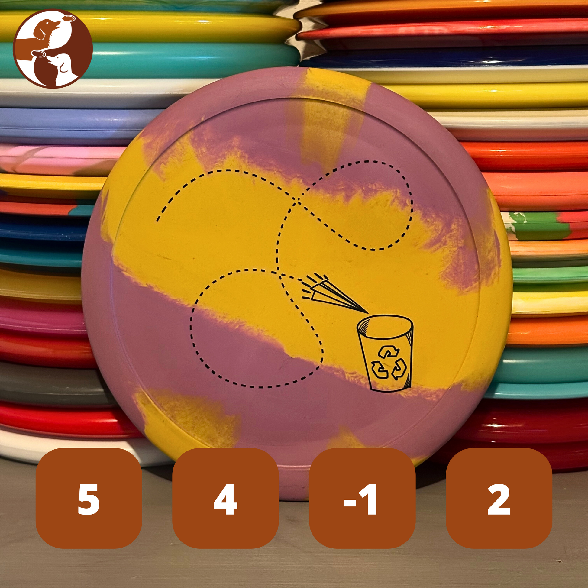 Their ecoFLEX rubber is made of vulcanized natural rubber, with up to 30% recycled material made of scrap from medical industry manufacturing such as rubber gloves, or stoppers. In other words, every 1,000 discs they produce prevents 10,000 rubber gloves that did not meet manufacturing standards from ending up in the world's landfills. Although it uses recycled material, it is extremely durable due to the strong and flexible nature of vulcanized natural rubber. It is also super grippy (think pink eraser or a new shoe sole) and their stiffest material to date making it easy to pick up and start using right away, while still maintaining a flex that absorbs impact.