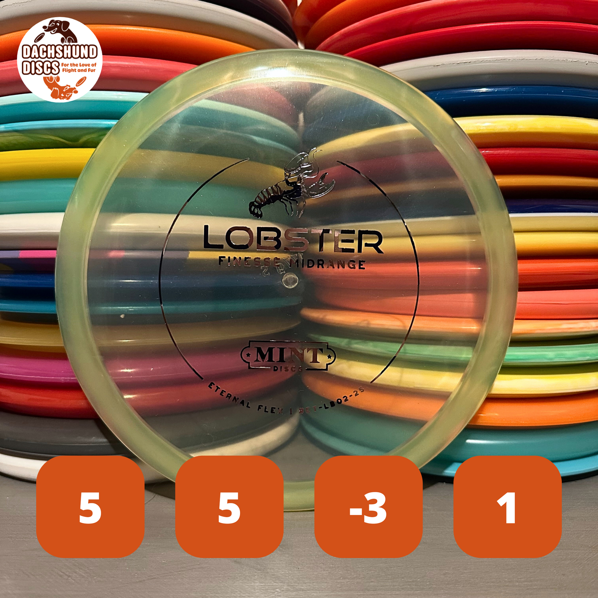Mint Discs Lobsters are predictably understable- they aren't a "turn and burn" disc, but can be relied on for hyzer flips or long panning turnovers. They're great for beginners and advanced arms alike to carve shots through the woods and are overall a pleasure to throw.