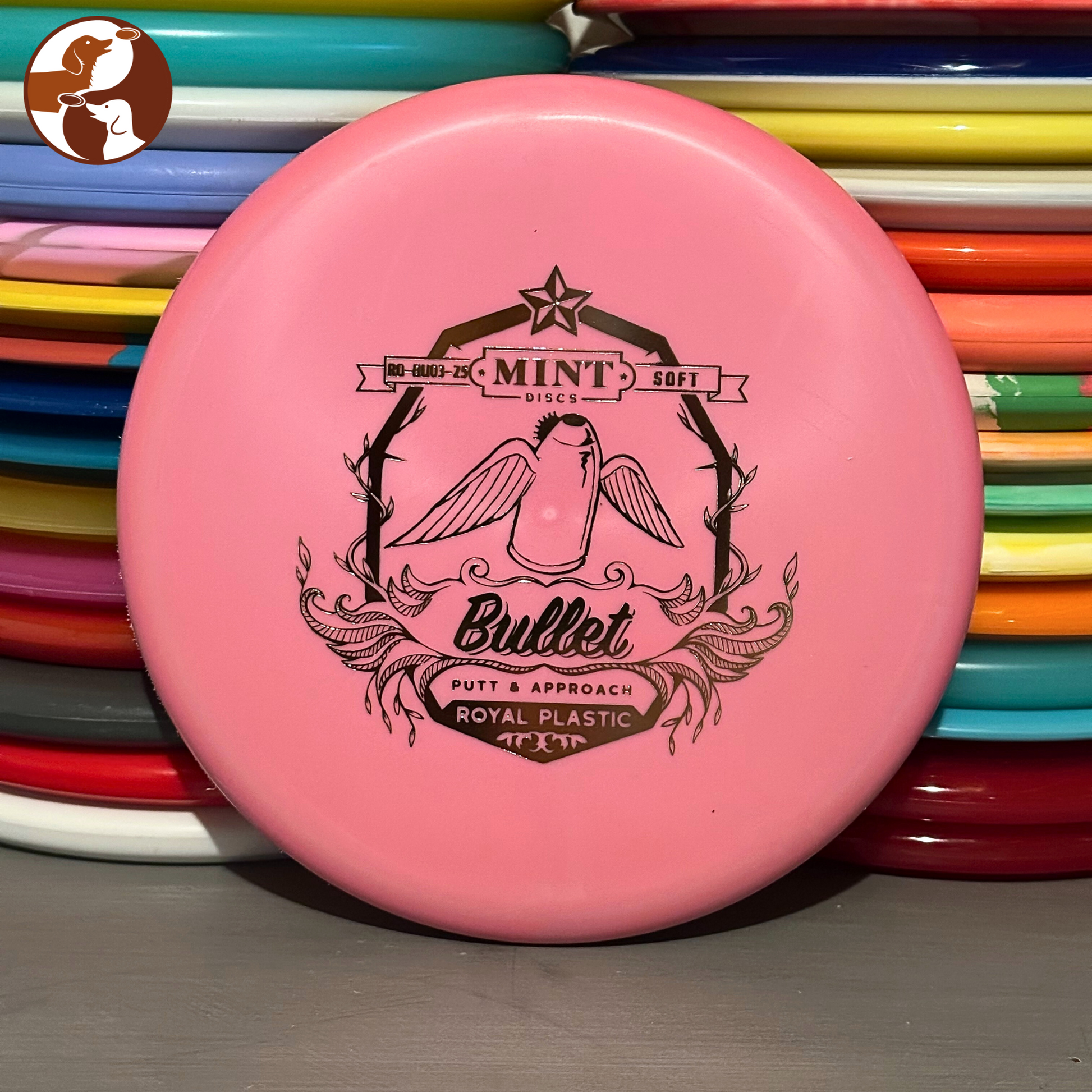 The Bullet is a classic neutral putter. With a smooth & rounded shoulder, the disc fits comfortably in your hand. The barely noticeable micro-bead, adds a little stability and depth to the putter.