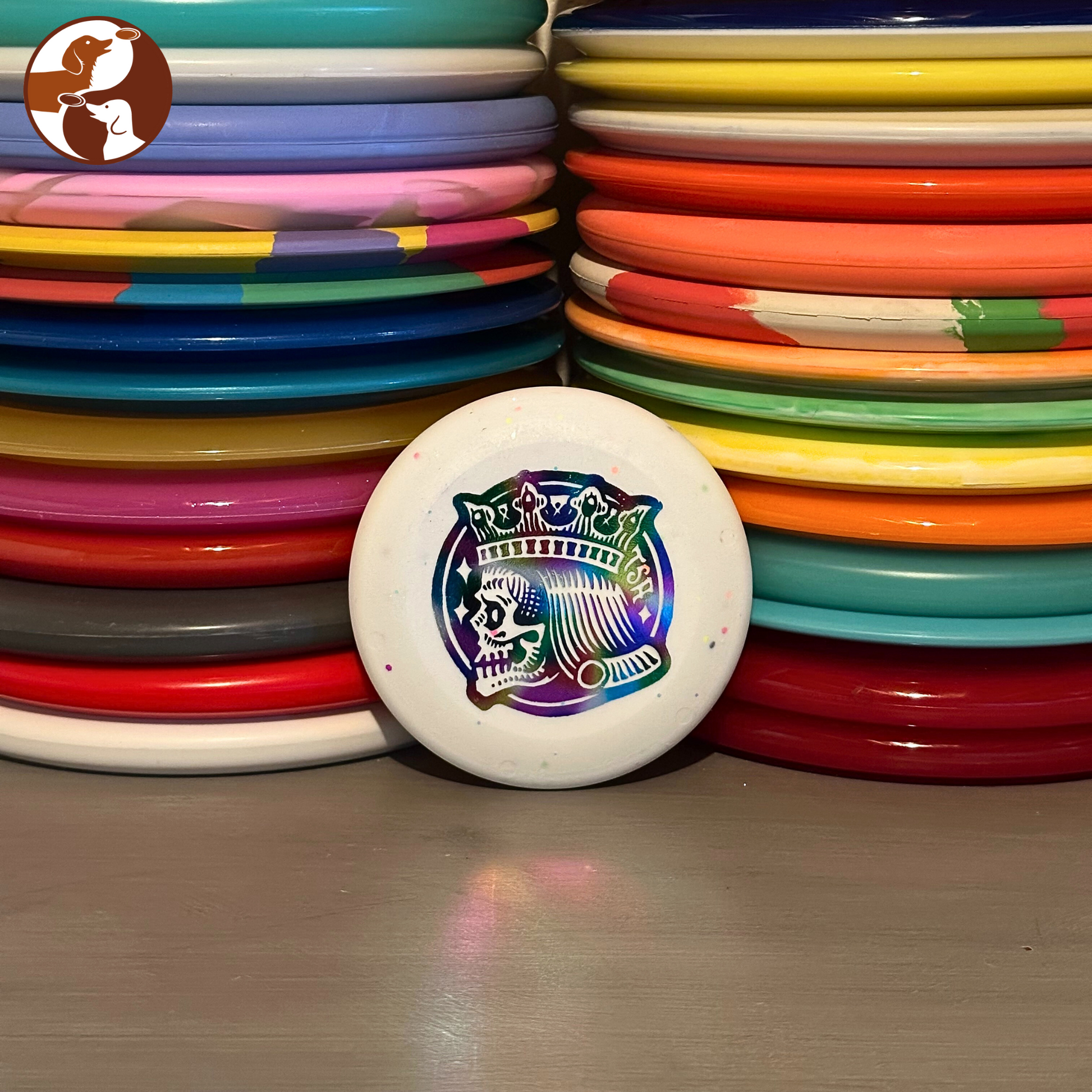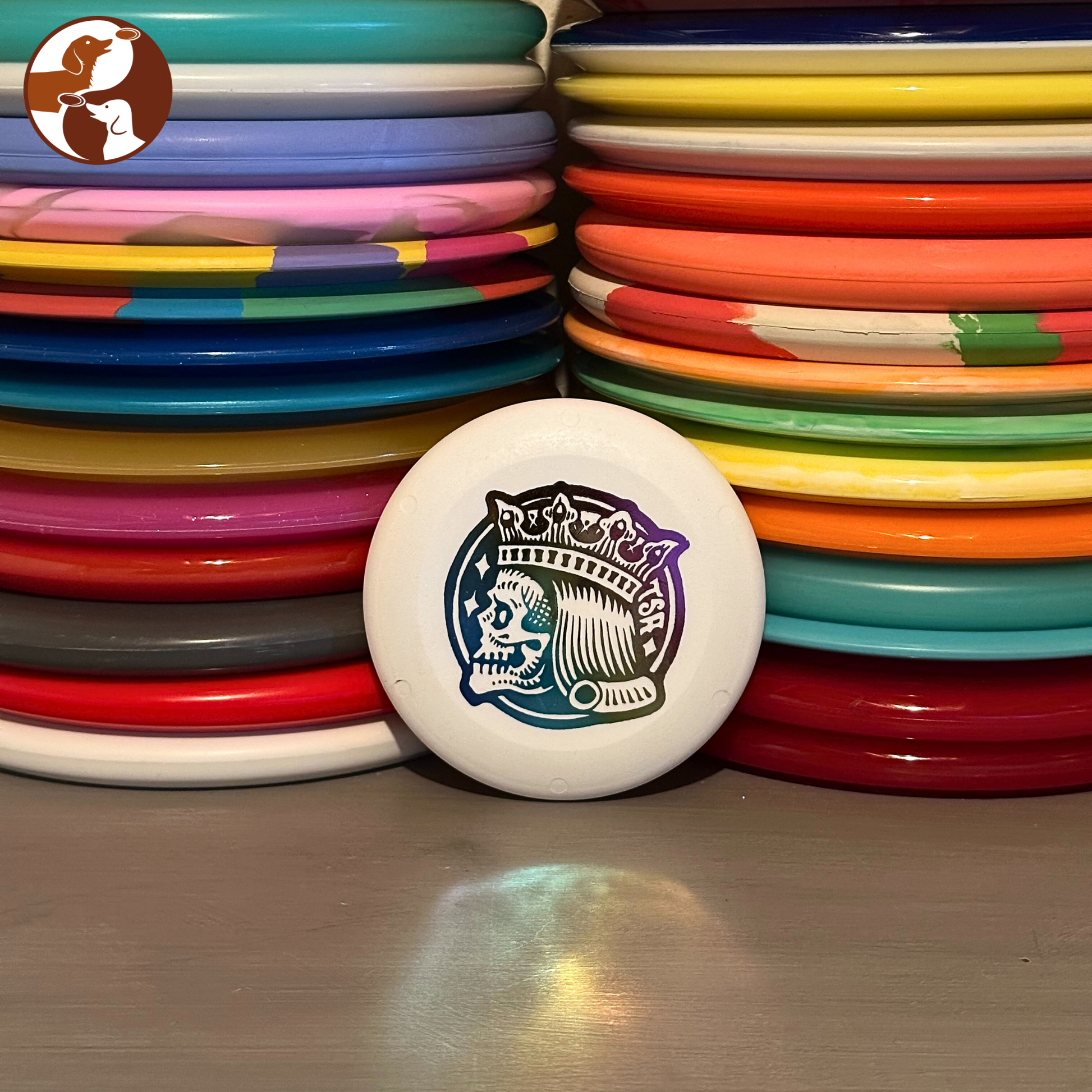 Mini marker from Thought Space Athletics with their Altered King design. These can be used as a PDGA-approved mini marker.