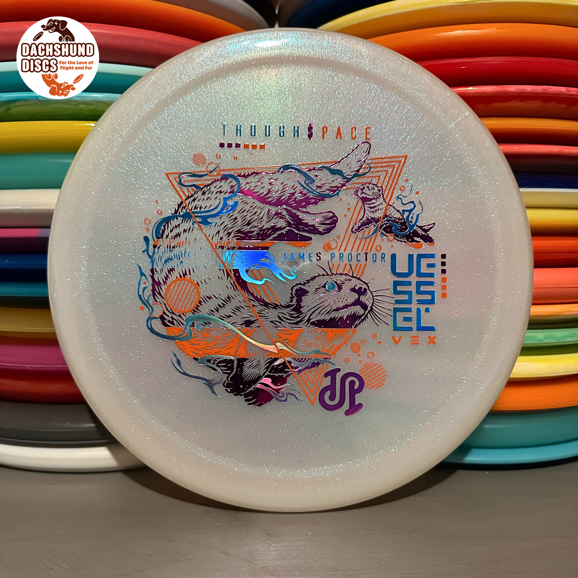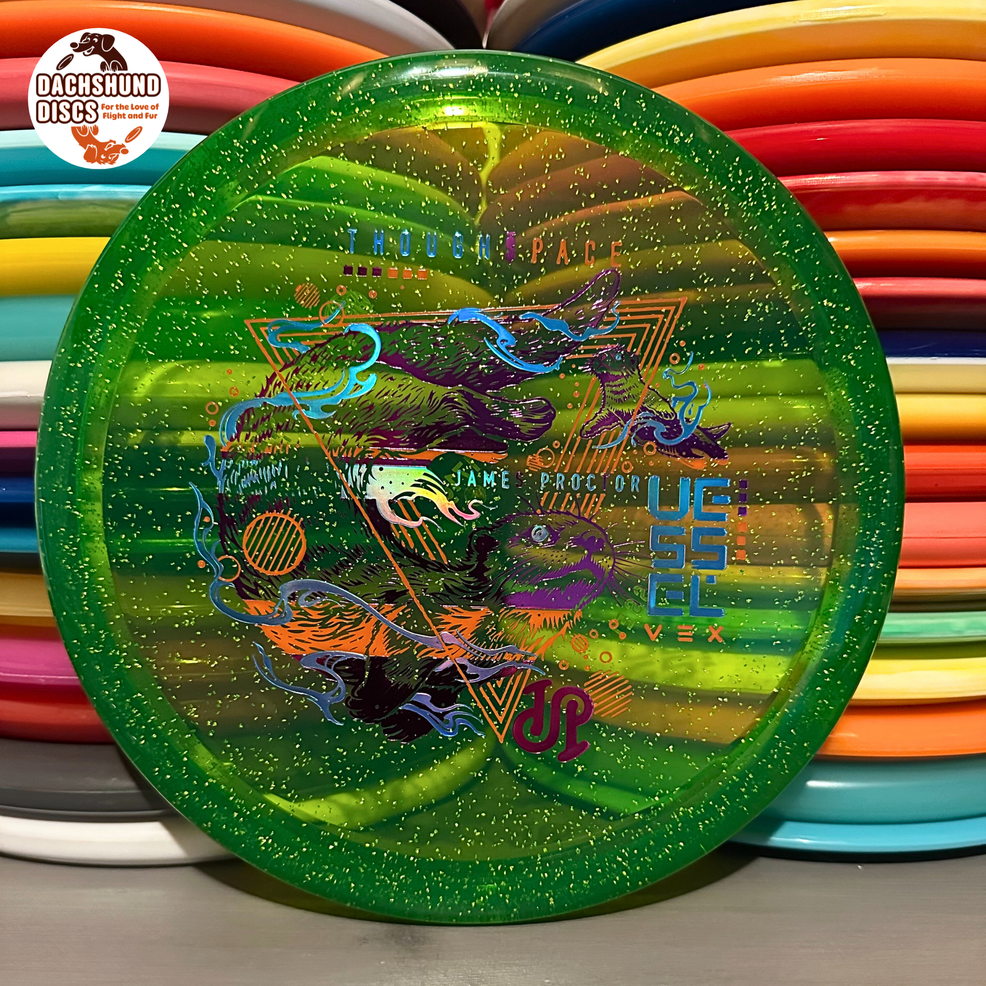Vex plastic by Thought Space Athletics is a durable, translucent plastic that is available in vibrant colors, often with added sparkle and cosmetic effects. It can be compared to the different varieties of Discraft Z Line plastic.