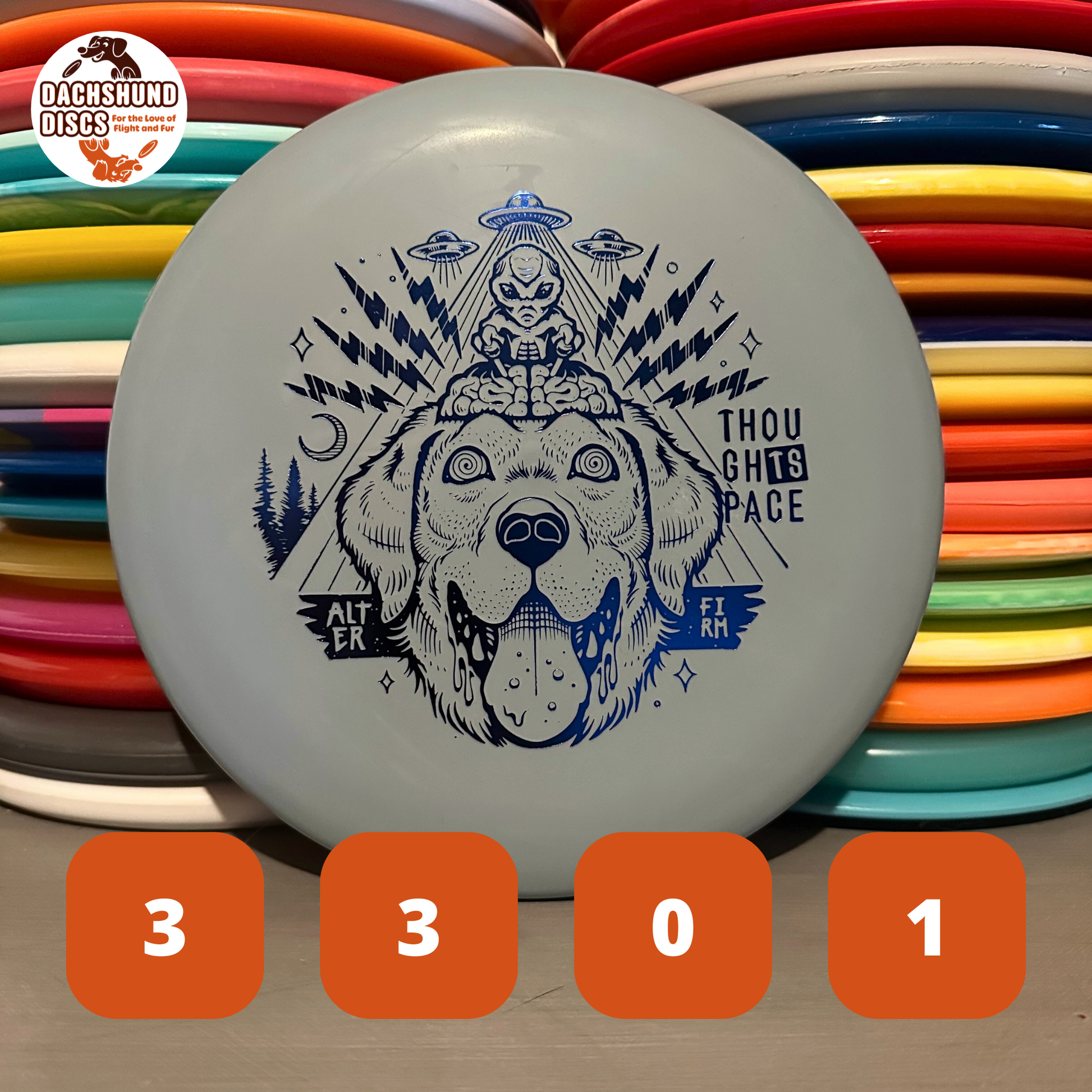 The Alter, by Thought Space Athletics, is a beaded putter with a flat top and a low profile. This stable disc flies consistently with a moderate fade. The Alter will be a reliable tool in your bag that will work well on the teepad, the green, and finishing at the basket.